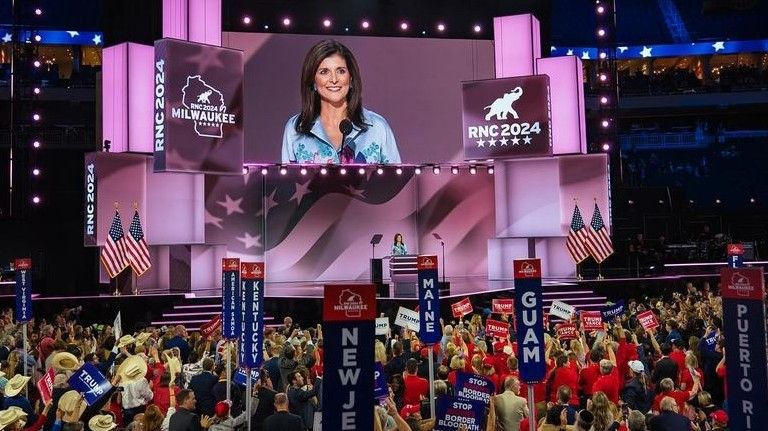 ਨਿੱਕੀ ਹੈਲੀ, ਸੰਯੁਕਤ ਰਾਸ਼ਟਰ ਦੀ ਸਾਬਕਾ ਰਾਜਦੂਤ ਅਤੇ ਦੱਖਣੀ ਕੈਰੋਲੀਨਾ ਦੀ ਗਵਰਨਰ, ਨੇ RNC ਸਟੇਜ 'ਤੇ ਤਾੜੀਆਂ ਦੀ ਗੜਗੜਾਹਟ ਦੇ ਵਿਚਕਾਰ ਆਪਣੇ ਸਮਰਥਕਾਂ ਨੂੰ ਕਿਹਾ ਕਿ ਤੁਹਾਨੂੰ ਟਰੰਪ ਨੂੰ ਵੋਟ ਪਾਉਣ ਲਈ 100 ਪ੍ਰਤੀਸ਼ਤ ਸਹਿਮਤ ਹੋਣ ਦੀ ਜ਼ਰੂਰਤ ਨਹੀਂ ਹੈ। ਬਸ ਮੇਰੇ ਵੱਲ ਦੇਖੋ।