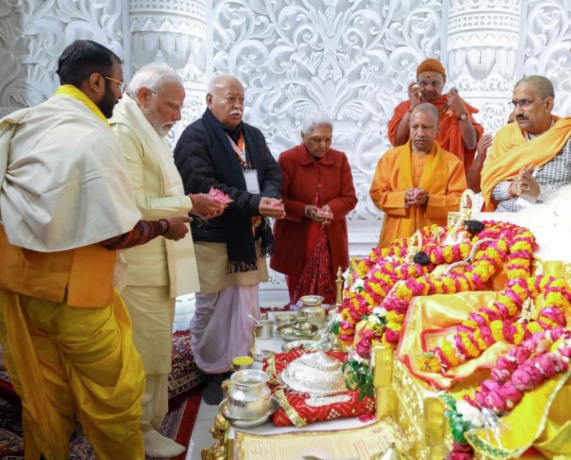 ਲੰਬੇ ਸੰਘਰਸ਼ ਅਤੇ ਕਠੋਰ ਨਤੀਜਿਆਂ ਨੂੰ ਯਾਦ ਕਰਦਿਆਂ ਪ੍ਰਧਾਨ ਮੰਤਰੀ ਨੇ ਜ਼ੋਰ ਦੇ ਕੇ ਕਿਹਾ ਕਿ ਮੰਦਰ ਏਕਤਾ ਦਾ ਪ੍ਰਤੀਕ ਹੋਵੇਗਾ। “ਰਾਮਲੱਲਾ ਦੇ ਇਸ ਮੰਦਰ ਦਾ ਨਿਰਮਾਣ ਭਾਰਤੀ ਸਮਾਜ ਦੀ ਸ਼ਾਂਤੀ, ਧੀਰਜ, ਆਪਸੀ ਸਦਭਾਵਨਾ ਅਤੇ ਤਾਲਮੇਲ ਦਾ ਪ੍ਰਤੀਕ ਵੀ ਹੈ। ਅਸੀਂ ਦੇਖ ਰਹੇ ਹਾਂ ਕਿ ਇਹ ਉਸਾਰੀ ਕਿਸੇ ਅੱਗ ਨੂੰ ਨਹੀਂ, ਸਗੋਂ ਊਰਜਾ ਨੂੰ ਜਨਮ ਦੇ ਰਹੀ ਹੈ। ਰਾਮ ਮੰਦਰ ਨੇ ਸਮਾਜ ਦੇ ਹਰ ਵਰਗ ਨੂੰ ਸੁਨਹਿਰੇ ਭਵਿੱਖ ਦੇ ਰਾਹ 'ਤੇ ਅੱਗੇ ਵਧਣ ਲਈ ਪ੍ਰੇਰਨਾ ਦਿੱਤੀ ਹੈ”, ਉਨ੍ਹਾਂ ਕਿਹਾ।