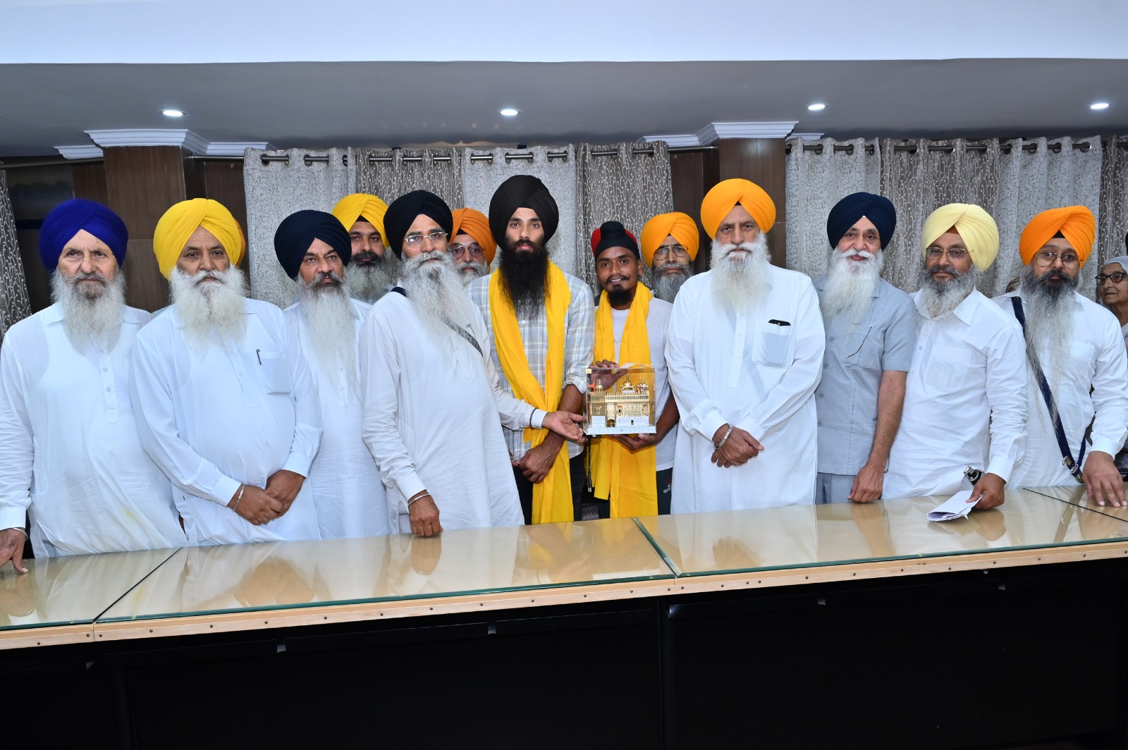 ਸ਼੍ਰੋਮਣੀ ਕਮੇਟੀ ਦਫ਼ਤਰ ਵਿਖੇ ਹਾਕੀ ਖਿਡਾਰੀ ਸ. ਜਰਮਨਪ੍ਰੀਤ ਸਿੰਘ ਨੂੰ ਸਨਮਾਨਿਤ ਕਰਦੇ ਹੋਏ ਐਡਵੋਕੇਟ ਹਰਜਿੰਦਰ ਸਿੰਘ ਧਾਮੀ ਅਤੇ ਹੋਰ / SGPC