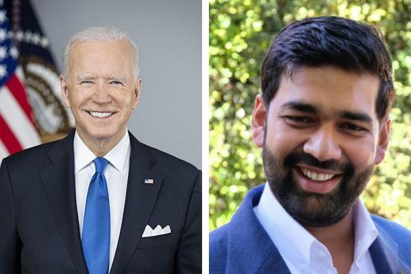 ਜੋਅ ਬਾਇਡਨ (ਖੱਬੇ) ਅਤੇ ਗੌਰਵ ਸ਼੍ਰੀਵਾਸਤਵ (ਸੱਜੇ) / Wikipedia and gauravandsharonsrivastavafoundation.org