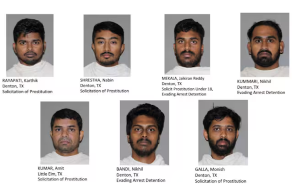 ਸ਼ੈਰਿਫ ਦੇ ਦਫਤਰ ਮੁਤਾਬਕ ਗ੍ਰਿਫਤਾਰ ਕੀਤੇ ਗਏ ਭਾਰਤੀ ਮੂਲ ਦੇ ਲੋਕਾਂ ਵਿਚ ਨਿਖਿਲ ਬਾਂਡੀ, ਨਿਖਿਲ ਕੁਮਾਰੀ, ਗਾਲਾ ਮੋਨੀਸ਼, ਕਾਰਤਿਕ ਰਾਏਪਤੀ, ਨਬੀਨ ਸ਼੍ਰੇਸ਼ਠ, ਅਮਿਤ ਕੁਮਾਰ ਅਤੇ ਜੈਕਿਰਨ ਰੈੱਡੀ ਮੇਕਾਲਾ ਸ਼ਾਮਲ ਹਨ। ਡੈਂਟਨ ਨਿਵਾਸੀ ਨਿਖਿਲ ਬਾਂਡੀ ਅਤੇ ਨਿਖਿਲ ਕੁਮਾਰੀ 'ਤੇ ਗ੍ਰਿਫਤਾਰੀ ਤੋਂ ਬਚਣ ਦੇ ਵੱਖਰੇ ਤੌਰ 'ਤੇ ਦੋਸ਼ ਲਗਾਏ ਗਏ ਹਨ। ਜੈਕਿਰਨ ਮੇਕਾਲਾ 'ਤੇ ਸੈਕਸ ਲਈ ਇੱਕ ਨਾਬਾਲਗ ਨੂੰ ਬੇਨਤੀ ਕਰਨ ਦਾ ਦੋਸ਼ ਹੈ, ਜੋ ਕਿ ਟੈਕਸਾਸ ਦੇ ਕਾਨੂੰਨ ਦੇ ਤਹਿਤ ਦੂਜੀ-ਡਿਗਰੀ ਦਾ ਅਪਰਾਧ ਹੈ। ਉਸ 'ਤੇ ਗ੍ਰਿਫਤਾਰੀ ਤੋਂ ਬਚਣ ਦੀ ਕੋਸ਼ਿਸ਼ ਕਰਨ ਦਾ ਵੀ ਦੋਸ਼ ਹੈ।