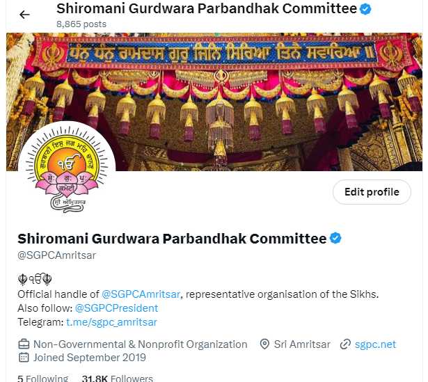 ਸ਼੍ਰੋਮਣੀ ਕਮੇਟੀ ਦੇ ਐਕਸ (ਟਵਿੱਟਰ) ਖਾਤੇ ਦਾ ਸਕ੍ਰੀਨਸ਼ਾਟ / x@SGPCAmritsar