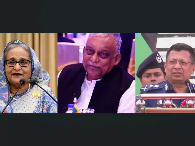 ਸਾਬਕਾ ਪ੍ਰਧਾਨ ਮੰਤਰੀ ਸ਼ੇਖ ਹਸੀਨਾ, ਸਾਬਕਾ ਗ੍ਰਹਿ ਮੰਤਰੀ ਅਸਦੁਜ਼ਮਾਨ ਖਾਨ ਕਮਲ ਅਤੇ ਸਾਬਕਾ ਪੁਲਿਸ ਮੁਖੀ ਚੌਧਰੀ ਅਬਦੁੱਲਾ ਅਲ-ਮਾਮੂਨ / Wikipedia