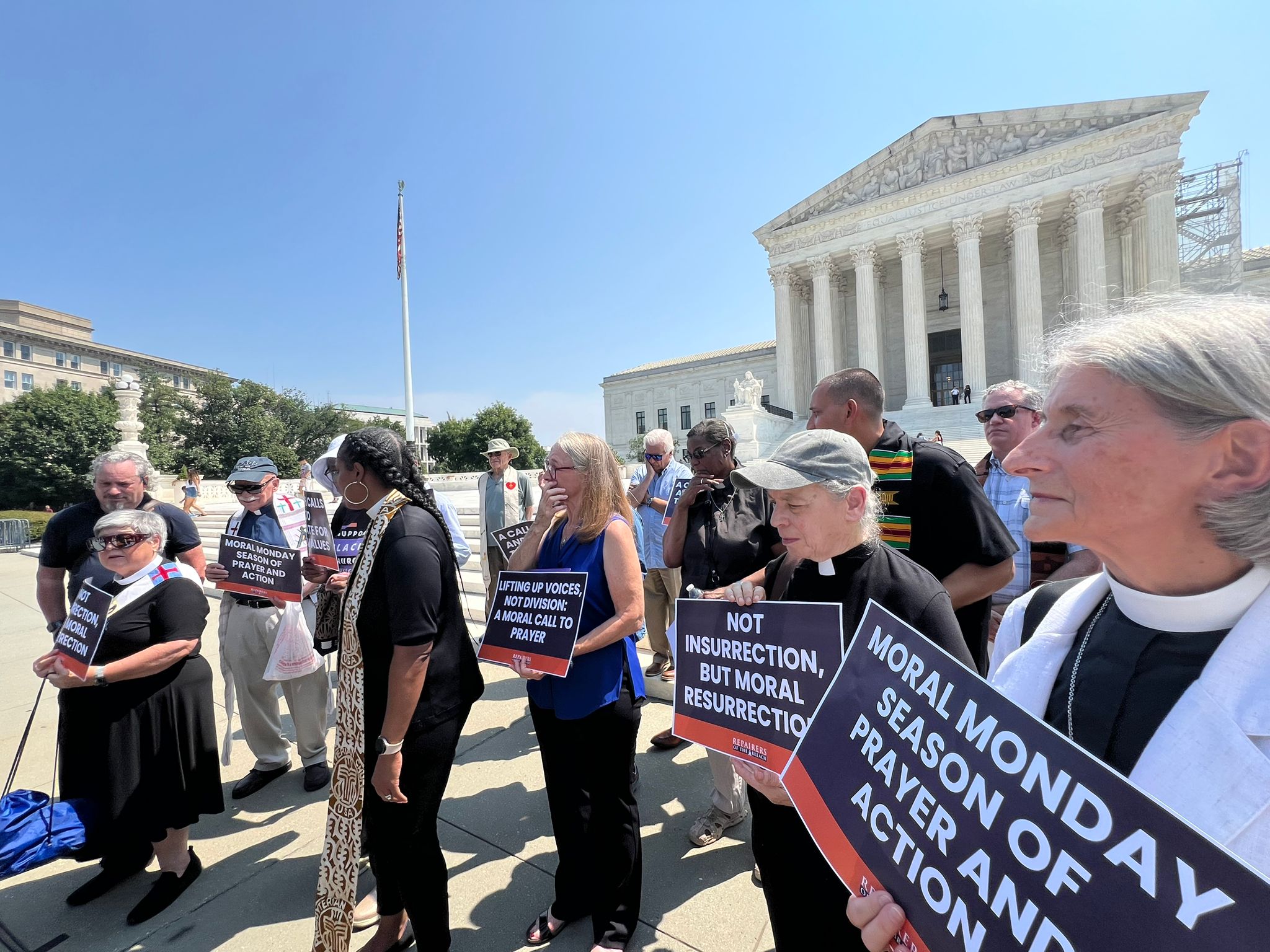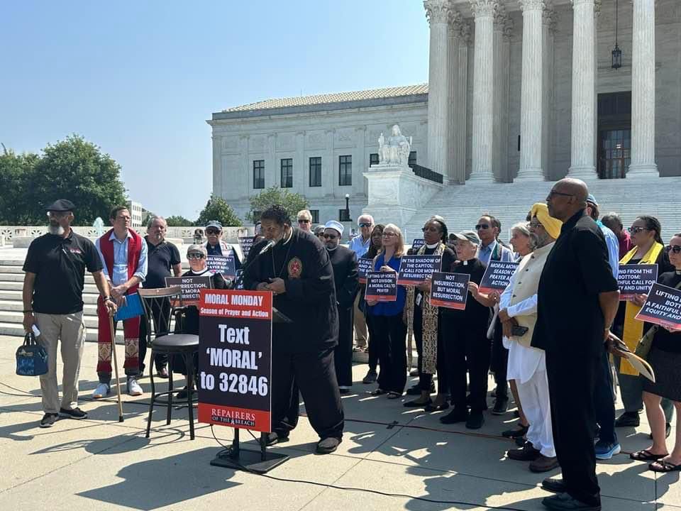 ਬਿਸ਼ਪ ਵਿਲੀਅਮ ਜੇ ਬਾਰਬਰ, II, ਸੀਨੀਅਰ ਲੈਕਚਰਾਰ, ਨੇ ਸੰਯੁਕਤ ਰਾਜ ਦੀ ਸੁਪਰੀਮ ਕੋਰਟ ਦੇ ਸਾਹਮਣੇ ਇੱਕ ਪ੍ਰਾਰਥਨਾ ਚੌਕਸੀ ਅਤੇ ਪ੍ਰੈਸ ਕਾਨਫਰੰਸ ਕਰਨ ਲਈ ਧਾਰਮਿਕ ਨੇਤਾਵਾਂ ਦੇ ਇੱਕ ਗੱਠਜੋੜ ਨੂੰ ਬੁਲਾਇਆ। ਇਹ ਇਕੱਠ ਰਾਸ਼ਟਰ ਨੂੰ ਸੱਚਾਈ, ਨਿਆਂ, ਪਿਆਰ ਅਤੇ ਬਰਾਬਰੀ ਵਿੱਚ ਚਲਾਈ ਗਈ ਮੁਹਿੰਮ ਲਈ ਪ੍ਰਾਰਥਨਾ ਕਰਨ ਲਈ ਸੱਦਾ ਸੀ।