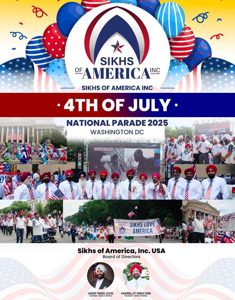ਅਮਰੀਕਾ ਦੀ ਪ੍ਰਮੱਖ ਸਿੱਖ ਸੰਸਥਾ "ਸਿੱਖਜ਼ ਆਫ ਅਮਰੀਕਾ" 4 ਜੁਲਾਈ ਨੂੰ ਰਾਸ਼ਟਰ ਦੀ ਆਜ਼ਾਦੀ ਦੀ ਵਰੇਗੰਡ ਮੌਕੇ ਵਾਸ਼ਿੰਗਟਨ ਡੀ.ਸੀ. ਵਿੱਚ ਹੋਣ ਵਾਲੀ "ਕੌਮੀ ਅਜ਼ਾਦੀ ਦਿਵਸ ਪਰੇਡ" ਵਿੱਚ ਆਪਣੀ ਲਗਾਤਾਰ 11ਵੀਂ ਹਾਜ਼ਰੀ ਲਵਾਉਣ ਲਈ ਪੂਰੀ ਤਰ੍ਹਾਂ ਨਾਲ ਤਿਆਰ ਹੈ। ਭਾਵੇਂ ਅਮਰੀਕਾ ਦੇ ਅਜ਼ਾਦੀ ਦਿਵਸ ਦੇ ਅਜਿਹੇ ਜਸ਼ਨ ਪੂਰੇ ਅਮਰੀਕਾ ਵਿੱਚ ਹੁੰਦੇ ਹਨ ਪਰ ਅਮਰੀਕਾ ਦੀ ਰਾਜਧਾਨੀ ਵਿੱਚ ਆਯੋਜਿਤ ਹੋਣ ਵਾਲੀ ਇਹ ਪਰੇਡ ਇੱਕ ਇਤਿਹਾਸਕ ਮਹੱਤਵ ਦੀ ਧਾਰਨੀ ਹੈ ਜਿਸ ਦਾ ਵਾਸ਼ਿੰਗਟਨ ਡੀਸੀ ਵਿੱਚ ਅਤੇ ਮੀਡੀਏ ਰਾਹੀਂ ਲੱਖਾਂ ਲੋਕ ਆਨੰਦ ਮਾਣਦੇ ਹਨ।