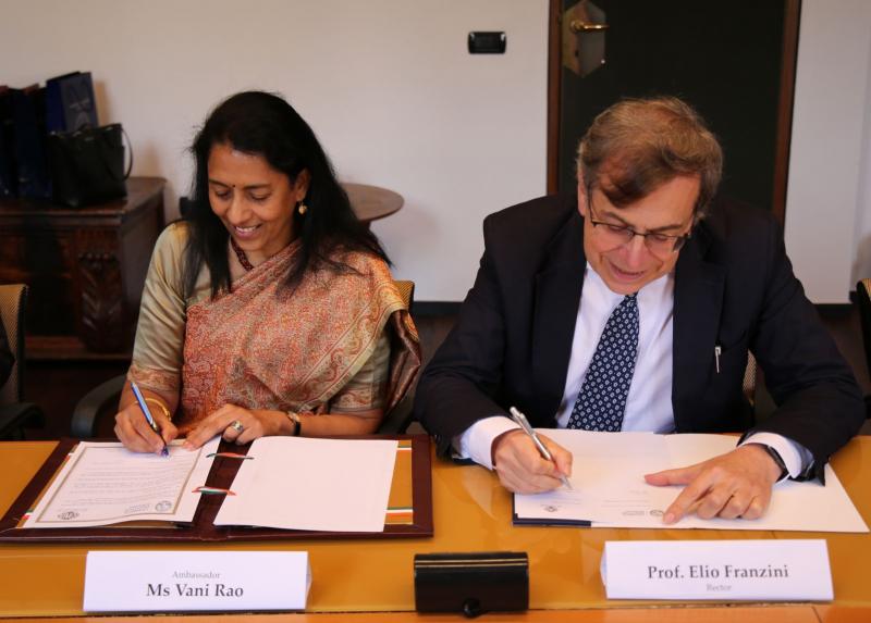 ਇਟਲੀ ਵਿਚ ਭਾਰਤੀ ਰਾਜਦੂਤ ਐਚ.ਈ. ਵਾਨੀ ਰਾਓ ਅਤੇ ਮਿਲਾਨ ਯੂਨੀਵਰਸਿਟੀ ਦੇ ਰੈਕਟਰ ਐਲੀਓ ਫ੍ਰਾਂਜ਼ੀਨੀ ਨੇ ਸਮਝੌਤੇ 'ਤੇ ਹਸਤਾਖਰ ਕੀਤੇ। ਇਸ ਸਹਿਯੋਗ ਦਾ ਉਦੇਸ਼ ਭਾਰਤ ਅਤੇ ਇਟਲੀ ਦਰਮਿਆਨ ਅਕਾਦਮਿਕ ਸਬੰਧਾਂ ਨੂੰ ਹੁਲਾਰਾ ਦੇਣਾ ਹੈ।