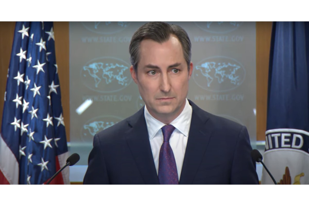 ਅਮਰੀਕੀ ਵਿਦੇਸ਼ ਵਿਭਾਗ ਦੇ ਸਪੋਕਸਪਰਸਨ ਮੈਥਿਊ ਮਿਲਰ ਮਈ.20 ਨੂੰ ਆਪਣੀ ਰੋਜ਼ਾਨਾ ਨਿਊਜ਼ ਬ੍ਰੀਫਿੰਗ ਦੌਰਾਨ ਪੱਤਰਕਾਰਾਂ ਨੂੰ ਸੰਬੋਧਨ ਕਰਦੇ ਹੋਏ / Screengrab/@StateDept YouTube