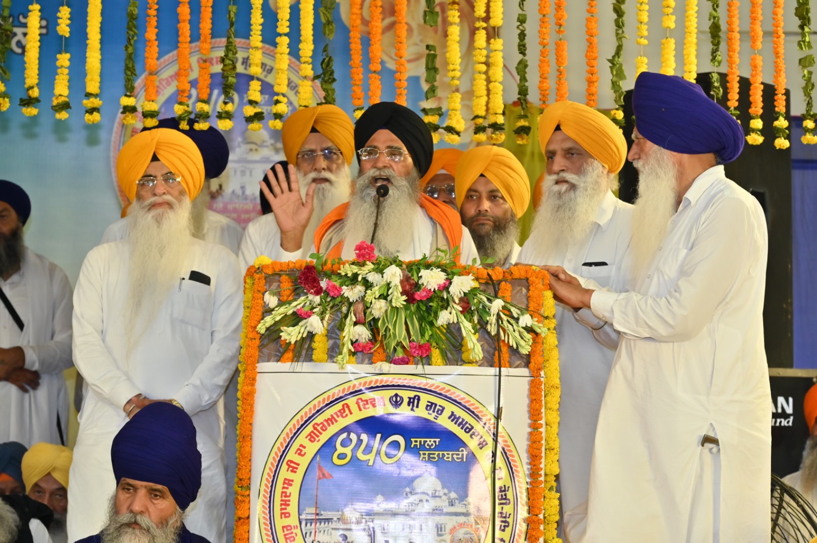 ਦਮਦਮੀ ਟਕਸਾਲ ਦੇ ਮੁਖੀ ਬਾਬਾ ਹਰਨਾਮ ਸਿੰਘ ਖ਼ਾਲਸਾ ਨੇ ਕਿਹਾ ਕਿ ਗੁਰਪੁਰਬ ਅਤੇ ਸ਼ਤਾਬਦੀਆਂ ਤਾਂ ਹੀ ਸਫ਼ਲ ਹਨ ਜੇਕਰ ਇਨ੍ਹਾਂ ਤੋਂ ਆਤਮਿਕ ਬਲ ਅਤੇ ਪੰਥਕ ਜਜ਼ਬਾ ਹਾਸਲ ਕੀਤਾ ਜਾਵੇ। ਉਨ੍ਹਾਂ ਸ਼੍ਰੋਮਣੀ ਕਮੇਟੀ ਵੱਲੋਂ ਸ਼ਤਾਬਦੀ ਸਮਾਗਮਾਂ ਦੀ ਸ਼ਲਾਘਾ ਕੀਤੀ। ਸਮਾਗਮ ਮੌਕੇ ਸ਼੍ਰੋਮਣੀ ਪੰਥ ਅਕਾਲੀ ਬੁੱਢਾ ਦਲ ਦੇ ਮੁਖੀ ਬਾਬਾ ਬਲਬੀਰ ਸਿੰਘ 96 ਕਰੋੜੀ, ਤਖ਼ਤ ਸ੍ਰੀ ਕੇਸਗੜ੍ਹ ਸਾਹਿਬ ਦੇ ਜਥੇਦਾਰ ਗਿਆਨੀ ਸੁਲਤਾਨ ਸਿੰਘ, ਦਲ ਪੰਥ ਬਾਬਾ ਬਿਧੀ ਚੰਦ ਦੇ ਮੁਖੀ ਬੀਬੀ ਅਵਤਾਰ ਸਿੰਘ ਸੁਰਸਿੰਘ, ਬਾਬਾ ਕਸ਼ਮੀਰ ਸਿੰਘ ਭੂਰੀ ਵਾਲੇ, ਪਦਮਸ਼੍ਰੀ ਬਾਬਾ ਸੇਵਾ ਸਿੰਘ ਖਡੂਰ ਸਾਹਿਬ, ਬਾਬਾ ਨਰਿੰਦਰ ਸਿੰਘ ਹਜ਼ੂਰ ਸਾਹਿਬ, ਤਖ਼ਤ ਸ੍ਰੀ ਪਟਨਾ ਸਾਹਿਬ ਤੋਂ ਗਿਆਨੀ ਗਗਨਦੀਪ ਸਿੰਘ, ਤਖ਼ਤ ਸ੍ਰੀ ਹਜ਼ੂਰ ਸਾਹਿਬ ਤੋਂ ਗਿਆਨੀ ਤਨਵੀਰ ਸਿੰਘ, ਬਾਬਾ ਤੇਜਿੰਦਰ ਸਿੰਘ ਨਾਨਕਸਰ ਕਲੇਰਾਂ, ਬਾਬਾ ਜੀਤ ਸਿੰਘ ਜੌਹਲਾਂ, ਪੰਜ ਪਿਆਰੇ ਭਾਈ ਦਇਆ ਸਿੰਘ ਦੇ ਵੰਸ਼ਜ਼ ਭਾਈ ਨੌਨਿਹਾਲ ਸਿੰਘ, ਜਨਰਲ ਸਕੱਤਰ ਭਾਈ ਰਜਿੰਦਰ ਸਿੰਘ ਮਹਿਤਾ ਅਤੇ ਉੱਤਰ ਪ੍ਰਦੇਸ਼ ਦੇ ਕਿਸਾਨ ਆਗੂ ਸ੍ਰੀ ਰਾਕੇਸ਼ ਟਿਕੈਤ ਨੇ ਵੀ ਸੰਬੋਧਨ ਕੀਤਾ। ਇਸ ਤੋਂ ਪਹਿਲਾਂ ਸੱਚਖੰਡ ਸ੍ਰੀ ਹਰਿਮੰਦਰ ਸਾਹਿਬ ਦੇ ਗ੍ਰੰਥੀ ਗਿਆਨੀ ਗੁਰਮਿੰਦਰ ਸਿੰਘ ਨੇ ਕਥਾ ਵਿਚਾਰਾਂ ਕੀਤੀਆਂ ਅਤੇ ਰਾਗੀ, ਢਾਡੀ ਤੇ ਕਵਿਸ਼ਰ ਜਥਿਆਂ ਨੇ ਵੀ ਹਾਜ਼ਰੀ ਭਰੀ। ਸਮਾਗਮ ਦੌਰਾਨ ਪੁੱਜੀਆਂ ਸ਼ਖ਼ਸੀਅਤਾਂ ਨੂੰ ਸ਼੍ਰੋਮਣੀ ਕਮੇਟੀ ਪ੍ਰਧਾਨ ਐਡਵੋਕੇਟ ਹਰਜਿੰਦਰ ਸਿੰਘ ਧਾਮੀ ਅਤੇ ਜਨਰਲ ਸਕੱਤਰ ਭਾਈ ਰਜਿੰਦਰ ਸਿੰਘ ਮਹਿਤਾ ਨੇ ਗੁਰੂ ਬਖ਼ਸ਼ਿਸ਼ ਸਿਰੋਪਾਓ ਦਿੱਤੇ।