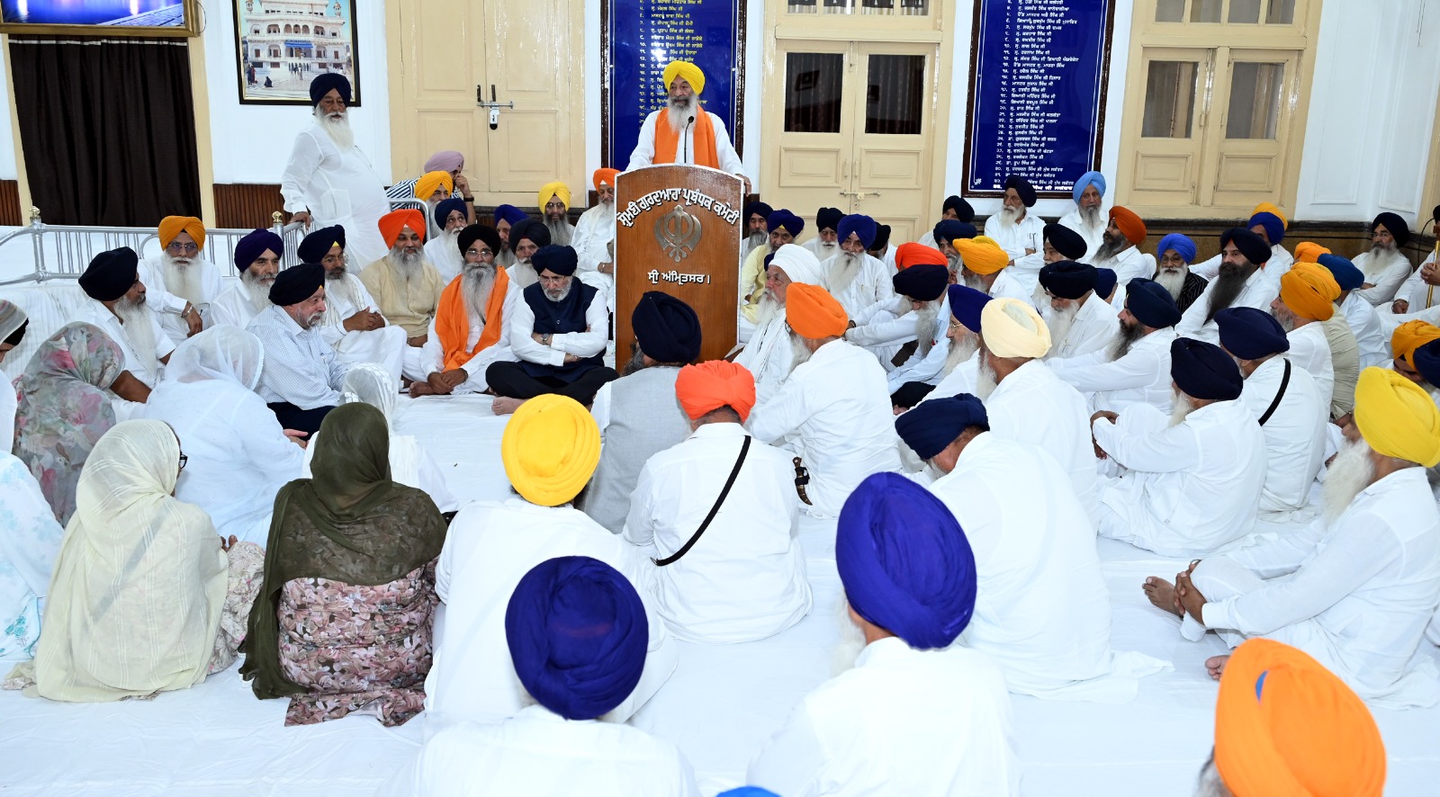 ਤੇਜਾ ਸਿੰਘ ਸਮੁੰਦਰੀ ਹਾਲ ਵਿਖੇ ਇਕੱਤਰਤਾ ਤੋਂ ਬਾਅਦ ਸ਼੍ਰੋਮਣੀ ਕਮੇਟੀ ਪ੍ਰਧਾਨ ਐਡਵੋਕੇਟ ਹਰਜਿੰਦਰ ਸਿੰਘ ਧਾਮੀ ਤੇ ਮੈਂਬਰ ਸਾਹਿਬਾਨ / SGPC