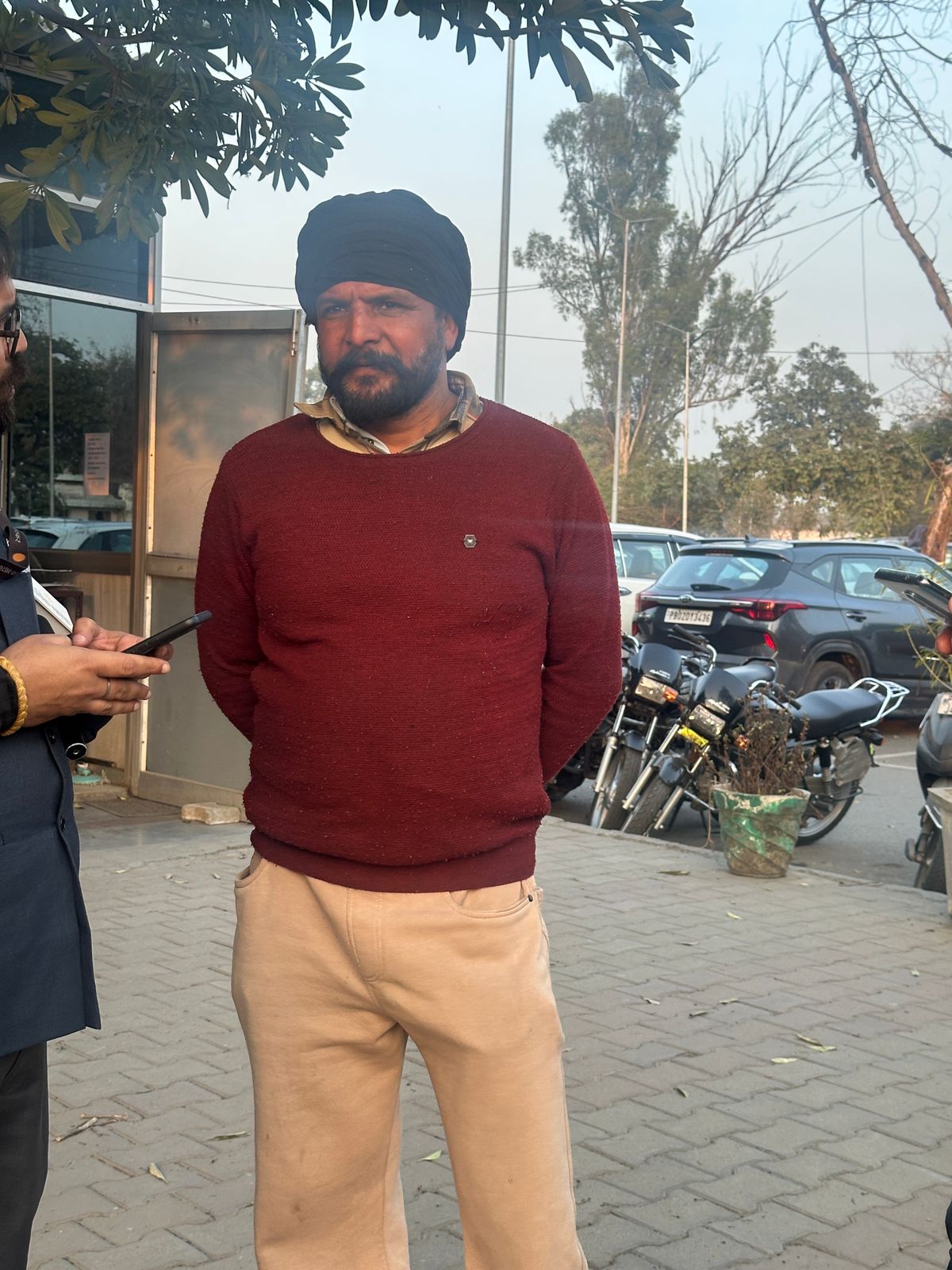 ਅੰਮ੍ਰਿਤਸਰ ਹਵਾਈ ਅੱਡੇ ਦੇ ਬਾਹਰ ਅਕਾਸ਼ਦੀਪ ਸਿੰਘ ਦੇ ਪਿਤਾ ਸਵਰਨ ਸਿੰਘ / ਜੇਕੇ ਸਿੰਘ