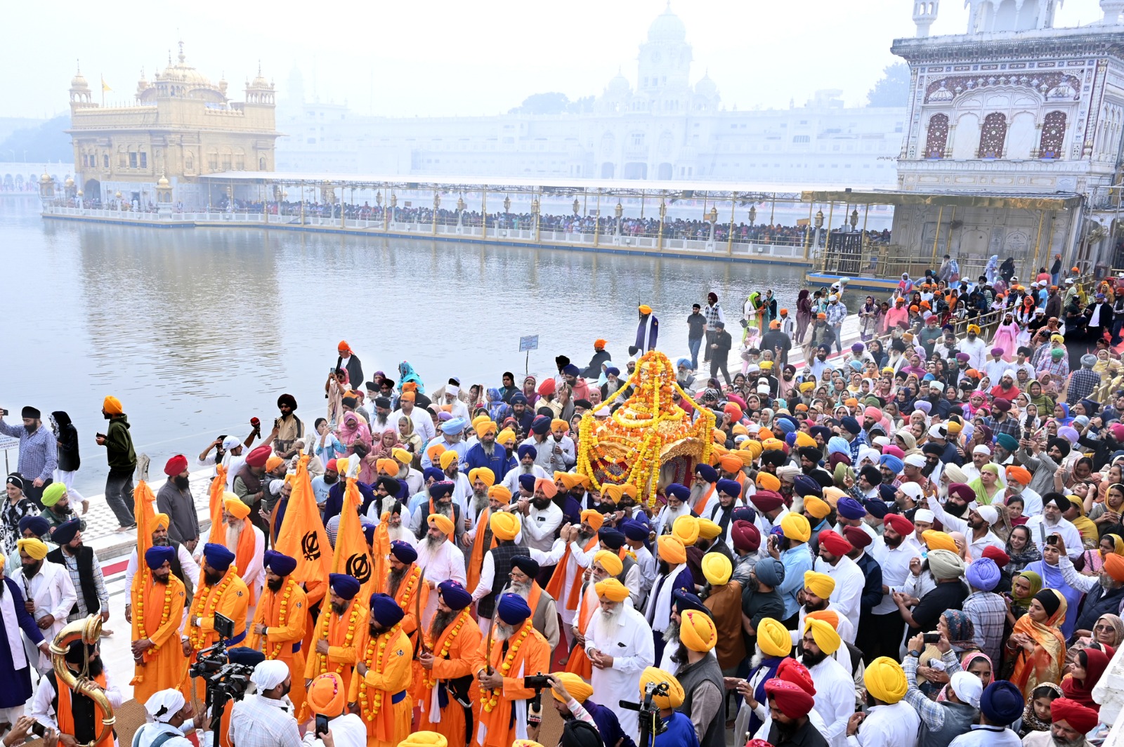 ਪਹਿਲੇ ਪਾਤਸ਼ਾਹ ਸ੍ਰੀ ਗੁਰੂ ਨਾਨਕ ਦੇਵ ਜੀ ਦੇ ਪ੍ਰਕਾਸ਼ ਗੁਰਪੁਰਬ ਸਬੰਧੀ ਸ਼੍ਰੋਮਣੀ ਗੁਰਦੁਆਰਾ ਪ੍ਰਬੰਧਕ ਕਮੇਟੀ ਵੱਲੋਂ ਧਾਰਮਿਕ ਸਭਾ-ਸੁਸਾਇਟੀਆਂ ਅਤੇ ਸੰਗਤਾਂ ਦੇ ਸਹਿਯੋਗ ਨਾਲ ਸ੍ਰੀ ਅਕਾਲ ਤਖ਼ਤ ਸਾਹਿਬ ਤੋਂ ਨਗਰ ਕੀਰਤਨ ਸਜਾਇਆ ਗਿਆ। ਸ੍ਰੀ ਗੁਰੂ ਗ੍ਰੰਥ ਸਾਹਿਬ ਜੀ ਦੀ ਛਤਰ ਛਾਇਆ ਅਤੇ ਪੰਜ ਪਿਆਰਿਆਂ ਦੀ ਅਗਵਾਈ ਵਿਚ ਸਜਾਏ ਗਏ ਨਗਰ ਕੀਰਤਨ ਦੀ ਆਰੰਭਤਾ ਮੌਕੇ ਸੱਚਖੰਡ ਸ੍ਰੀ ਹਰਿਮੰਦਰ ਸਾਹਿਬ ਦੇ ਮੁੱਖ ਗ੍ਰੰਥੀ ਤੇ ਸ੍ਰੀ ਅਕਾਲ ਤਖ਼ਤ ਸਾਹਿਬ ਦੇ ਜਥੇਦਾਰ ਸਿੰਘ ਸਾਹਿਬ ਗਿਆਨੀ ਰਘਬੀਰ ਸਿੰਘ, ਸ਼੍ਰੋਮਣੀ ਕਮੇਟੀ ਪ੍ਰਧਾਨ ਐਡਵੋਕੇਟ ਹਰਜਿੰਦਰ ਸਿੰਘ ਧਾਮੀ ਸਮੇਤ ਪ੍ਰਮੁੱਖ ਸ਼ਖ਼ਸੀਅਤਾਂ ਨੇ ਸ਼ਮੂਲੀਅਤ ਕੀਤੀ। ਅਰਦਾਸ ਉਪਰੰਤ ਸ੍ਰੀ ਗੁਰੂ ਗ੍ਰੰਥ ਸਾਹਿਬ ਜੀ ਦਾ ਪਾਵਨ ਸਰੂਪ ਸਿੰਘ ਸਾਹਿਬ ਜਥੇਦਾਰ ਗਿਆਨੀ ਰਘਬੀਰ ਸਿੰਘ ਨੇ ਸੁਨਹਿਰੀ ਪਾਲਕੀ ਸਾਹਿਬ ਵਿਚ ਸੁਸ਼ੋਭਿਤ ਕੀਤਾ। ਨਗਰ ਕੀਰਤਨ ਦੌਰਾਨ ਵੱਡੀ ਗਿਣਤੀ ਵਿਚ ਸੰਗਤਾਂ ਨੇ ਸ਼ਮੂਲੀਅਤ ਕਰਦਿਆਂ ਸ਼ਰਧਾ ਦਾ ਪ੍ਰਗਟਾਵਾ ਕੀਤਾ ਅਤੇ ਸਕੂਲੀ ਬੱਚਿਆਂ, ਬੈਂਡ ਪਾਰਟੀਆਂ, ਸ਼ਬਦ ਚੌਂਕੀ ਜਥੇ ਤੇ ਗਤਕਾ ਪਾਰਟੀਆਂ ਨੇ ਪੂਰੇ ਉਤਸ਼ਾਹ ਨਾਲ ਨਗਰ ਕੀਰਤਨ ਵਿਚ ਸ਼ਮੂਲੀਅਤ ਕੀਤੀ। ਨਗਰ ਕੀਰਤਨ ਦੇ ਰਸਤੇ ਵਿਚ ਸੰਗਤਾਂ ਵੱਲੋਂ ਜਲ ਪਾਣੀ ਅਤੇ ਲੰਗਰਾਂ ਰਾਹੀਂ ਸੇਵਾ ਕੀਤੀ ਗਈ।