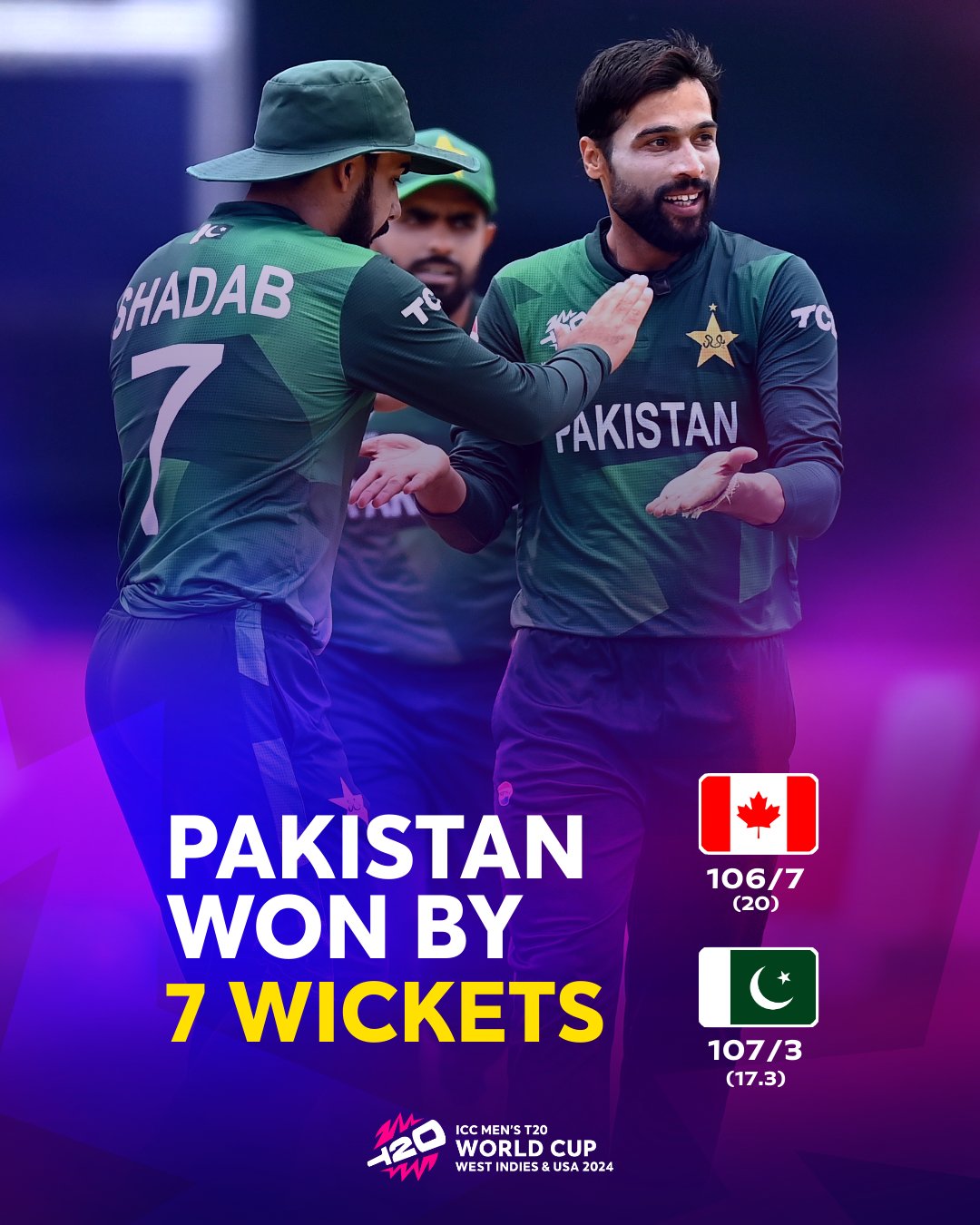 ਪਾਕਿਸਤਾਨ ਨੇ ਨਸਾਓ ਕਾਊਂਟੀ ਇੰਟਰਨੈਸ਼ਨਲ ਕ੍ਰਿਕਟ ਸਟੇਡੀਅਮ 'ਚ ਕੈਨੇਡਾ ਨੂੰ 7 ਵਿਕਟਾਂ ਨਾਲ ਹਰਾਇਆ / @T20WorldCup